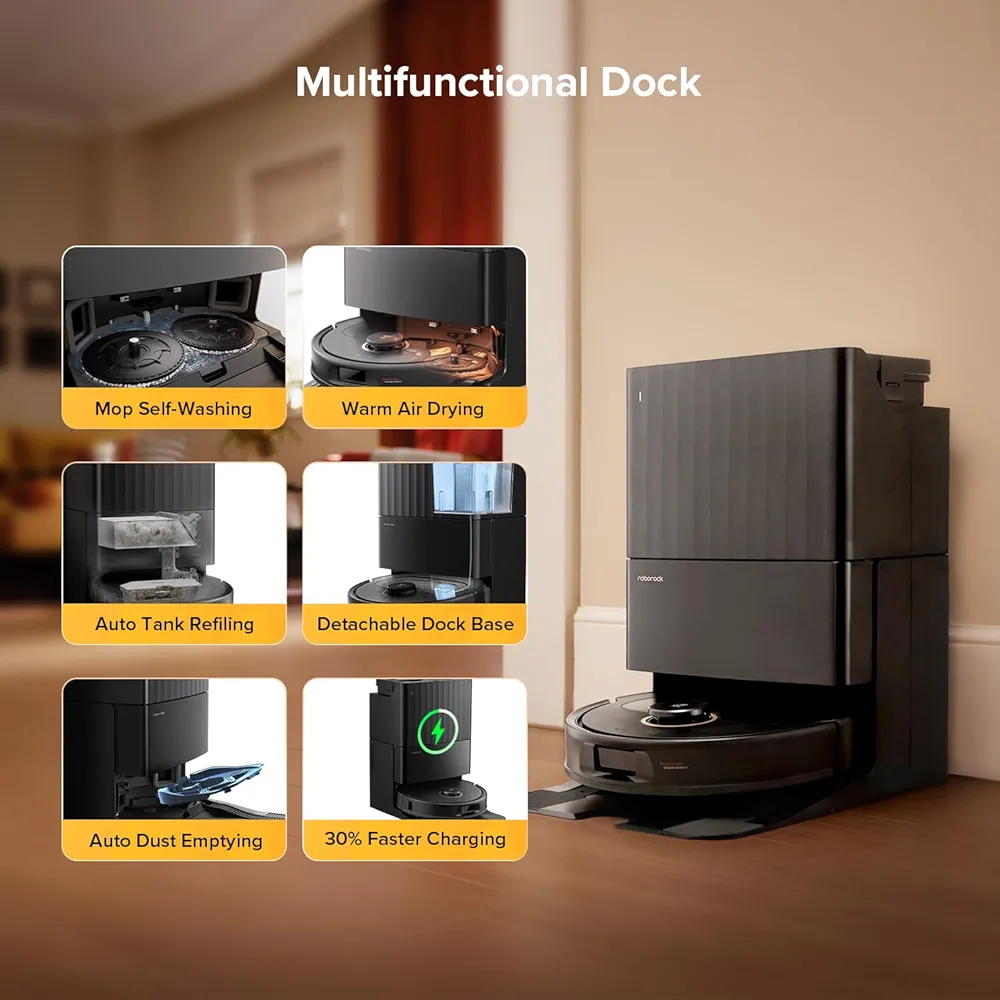 * **تخلیه خودکار زباله:** مخزن زباله ربات پس از هر بار تمیز کردن به طور خودکار در ایستگاه تخلیه میشود.